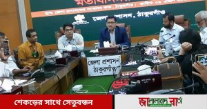 ‎জেলা প্রশাসনের আয়োজনে অনুষ্ঠিত সভায় নয়া জেলা প্রশাসক ও জেলা ম্যাজিস্ট্রেট মোহাম্মদ রফিকুল হকের সভাপতিত্বে বক্তব্য দেন অতিরিক্ত জেলা ম্যাজিস্ট্রেট মো: গোলাম ফেরদৌস, সদর উপজেলা নির্বাহী কর্মকর্তা মো: খাইরুল ইসলাম, ঠাকুরগাঁও প্রেসক্লাবের ভারপ্রাপ্ত সভাপতি মো: লুৎফর রহমান মিঠু, নির্বাহী সদস্য আলহাজ্ব মো: আব্দুল লতিফ, দৈনিক লোকায়ন পত্রকার সম্পাদক মো: সাকেরুল্লাহ, প্রেসক্লাবের প্রকাশনা সম্পাদক গোলাম সারোয়ার স¤্রাট, দপ্তর সম্পাদক মো: আসাদুজ্জামান শামিম, সদস্য এসএম জসিম উদ্দিন, মজিবর রহমান খান, কামরুল ইসলাম রুবায়েত, সাংবাদিক বিশাল রহমান, কামরুল হাসান, সৈয়দ আব্দুল করিম প্রমুখ।