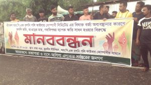 সোমবার (১৯ মে) দুপুরে উপজেলার ভূনবীর ইউনিয়নের রাজ পাড়া গ্রামের রশনি পলি ফাইবার কোম্পানীর সামনে রাজাপারা ও বাদে-আলিশা এলাকার সর্বস্তরের জনগণ এর আয়োজনে এ মানববন্ধন অনুষ্ঠিত হয়। এতে বক্তব্য রাখেন ভূনবীর ইউনিয়নের সাবেক ইউপি সদস্য (মেম্বার) আব্দুল আহাদ, গ্রামবাসী মনা মিয়া, রাসেল মিয়া, রহিম মিয়া, সোহেল মিয়া ও আল আমিন প্রমুখ।