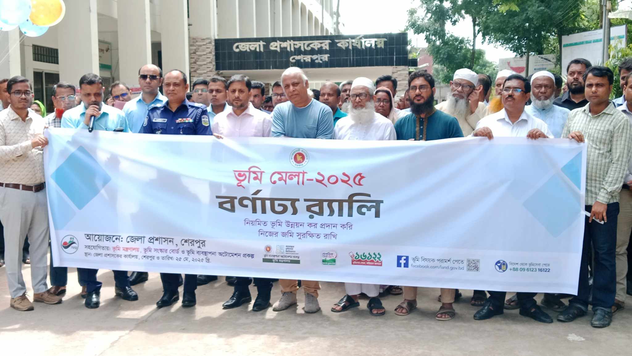 শেরপুরে ভূমি মেলা ২০২৫ ইং উপলক্ষে বর্ণাঢ্য র্যালি অনুষ্ঠিত