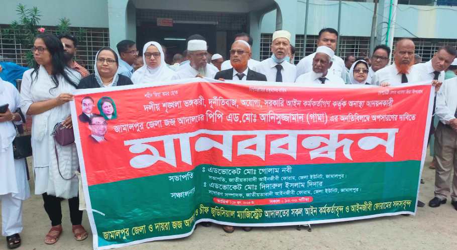 ১৮ জুন বুধবার সকালে জামালপুর জেলা জজ আদালত চত্ত্বরে মানববন্ধনে আইনজীবীদের পক্ষ থেকে পিপি আনিসুজ্জামানের দ্রুত অপসারণ দাবি করা হয়। অন্যথায় আগামী ২২ জুন রবিবার থেকে বৃহত্তর আন্দোলনে যাবার হুঁশিয়ারি দেওয়া হয়।