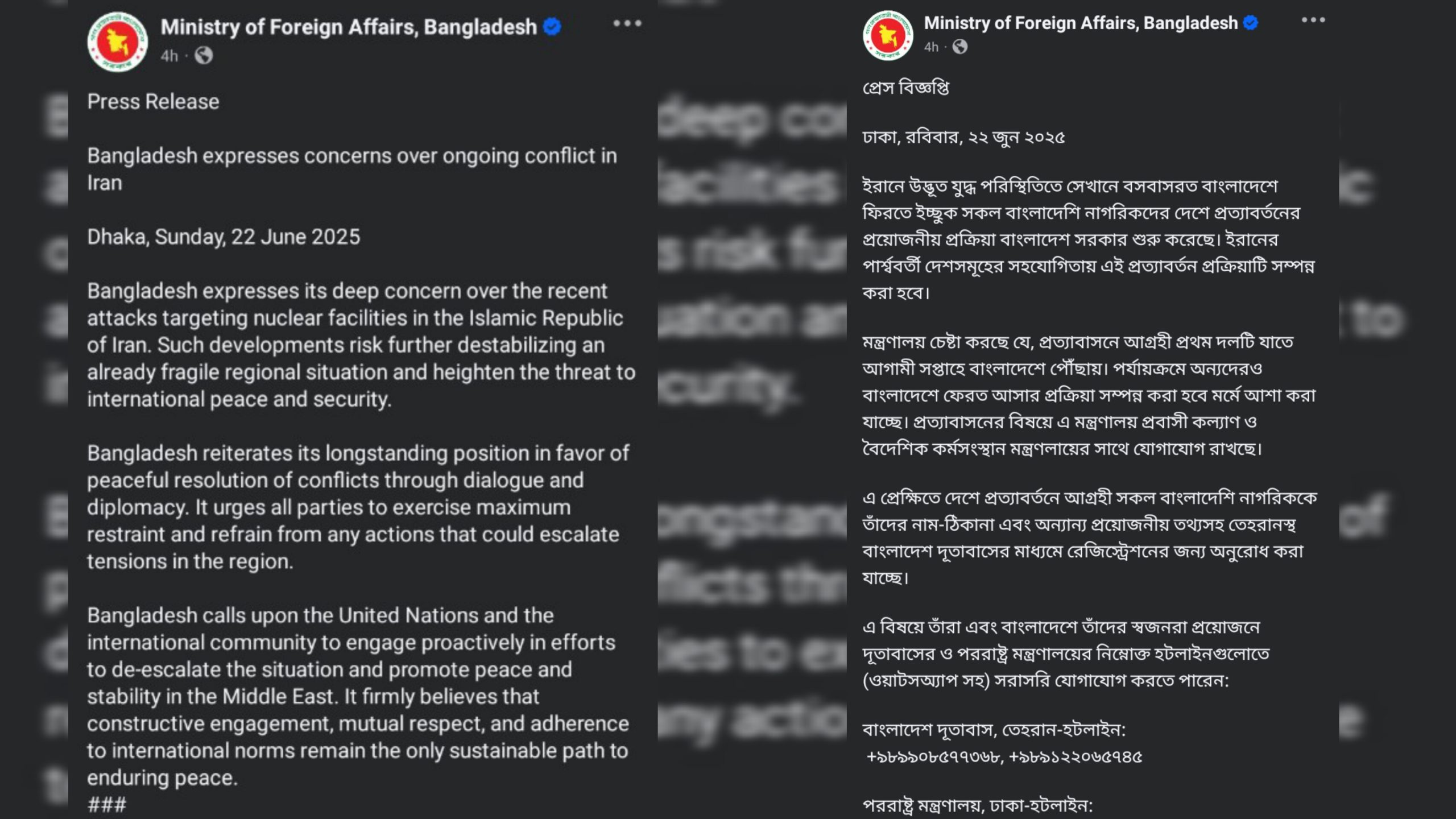 ইরানে চলমান সংঘাত নিয়ে বাংলাদেশের উদ্বেগ প্রকাশ
