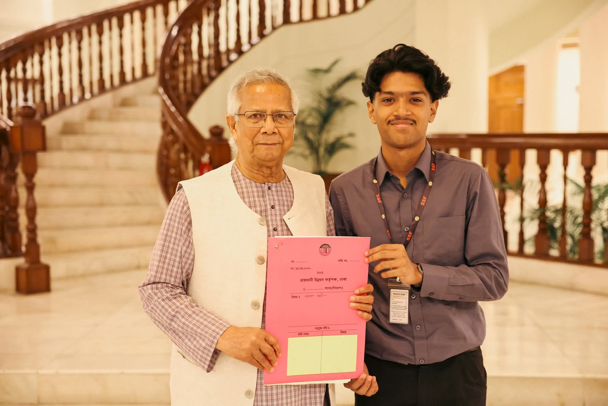 আজ বৃহস্পতিবার (২১ আগস্ট) বিকেলে রাষ্ট্রীয় অতিথি ভবন যমুনায় মাহির সরওয়ার মেঘের হাতে এই দলিল হস্তান্তর করেন প্রধান উপদেষ্টা।