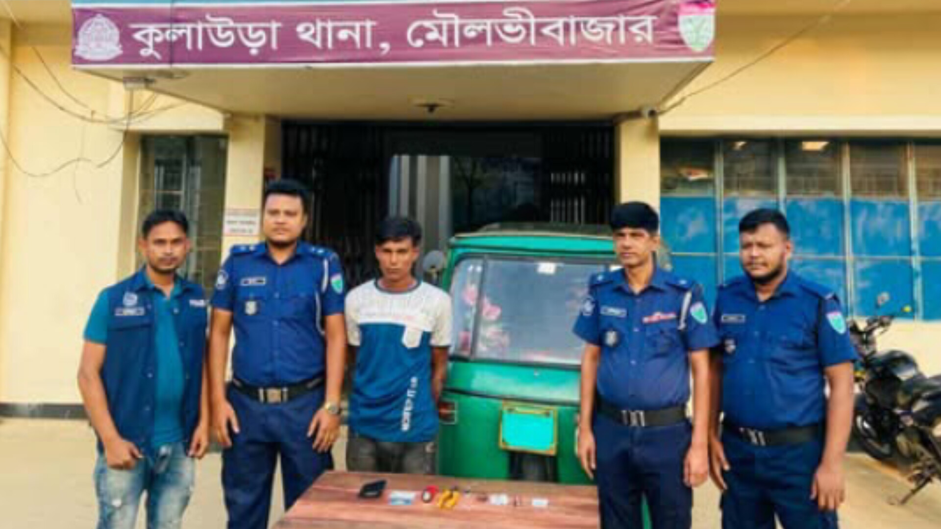 কুলাউড়ায় পুলিশের ধাওয়ায় চোরাই সিএনজি সহ যুবক আটক