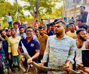 পরে বন্যপ্রাণী সেবা ফাউন্ডেশনের পরিচালক স্বপন দেব সজল, পরিবেশকর্মী রাজদীপ দীপ ও রিদম গৌড় ঘটনাস্থলে গিয়ে গাছের উপর থেকে সাপটিকে নিরাপদে নামিয়ে আনেন।