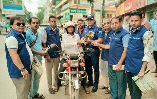 শ্রীমঙ্গলে হেলমেট পড়া বাইকারদের রজনীগন্ধা ফুলের শুভেচ্ছা